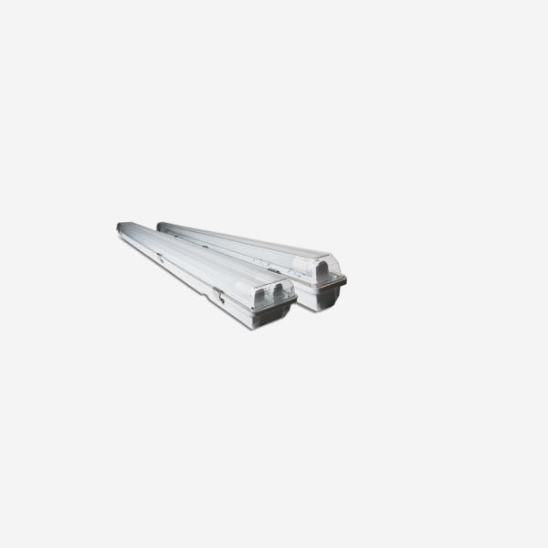 Armadura em policarbonato para instalação de tubos LED T8, proteção IP65 e várias medidas com Feixos Inox.