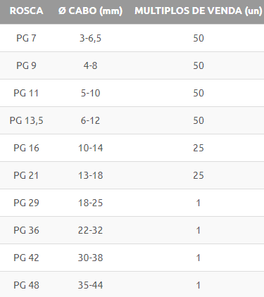 Bucin metálico IP68, para cabos com malha.