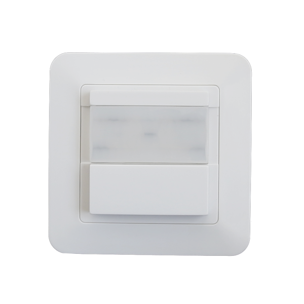 Detetor de movimento com sensor de infravermelhos para a aplicação embutida em parede. A potência de comutação total do sensor é de 500W.