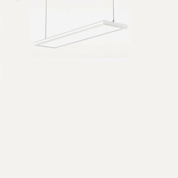 Luminária de suspensão com design moderno de dupla emissão de luz (40% superior e 60% inferior). Possui uma placa de guia de luz (LGP) de alta performance, e uma iluminação uniforme (270º de feixe de luz) criando um ambiente radiante e de longa durabilidade.