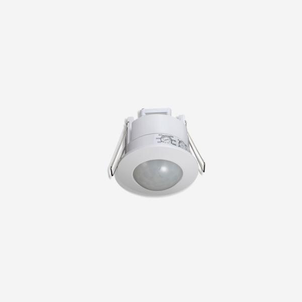 Detector de movimento com tecnologia Infravermelhos (PIR) para instalação em tecto falso (IP20). Tem ângulo de detecção de 360º, alcance de 6mts e carga máxima suportada de 1200W (Incand.) ou 300W (LED).