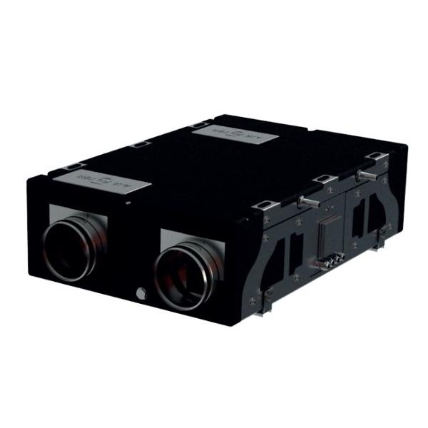 Sistema de fluxo duplo auto regulável modular, de elevado rendimento, para renovação do ar em edifícios. Equipado com By-Pass e um comutador de controlo. Especialmente desenvolvido para instalação em tecto falso, armários ou locais com pouca cota.