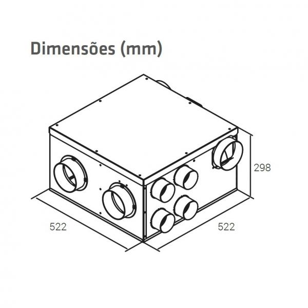 Conexões: Ø125 -extração cozinha, Ø80 15 m³/h ou 30 m³/h - 4 extrações sanitarias, Ø125 admissão, Ø80 - 8 insuflações