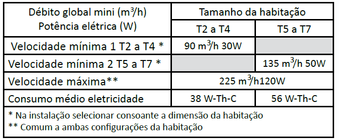 ALIMENTAÇÃO MONOFÁSICA 230V -50Hz com 3 velocidades (configurada na instalação com 2 velocidades consoante as dimensões da habitação)