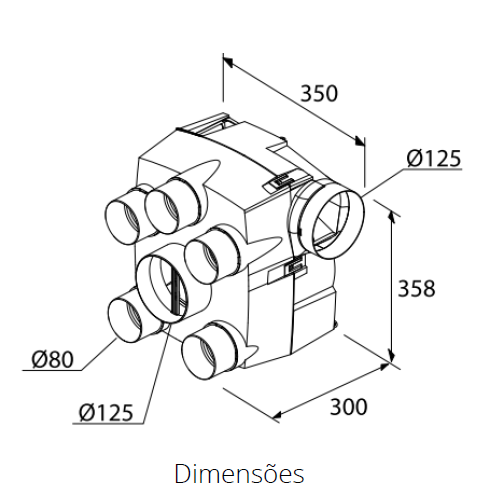 CONEXÕES Cozinha Ø125mm, sanitário Ø80mm 15m/h ou 30m/h, rejeição Ø125mm